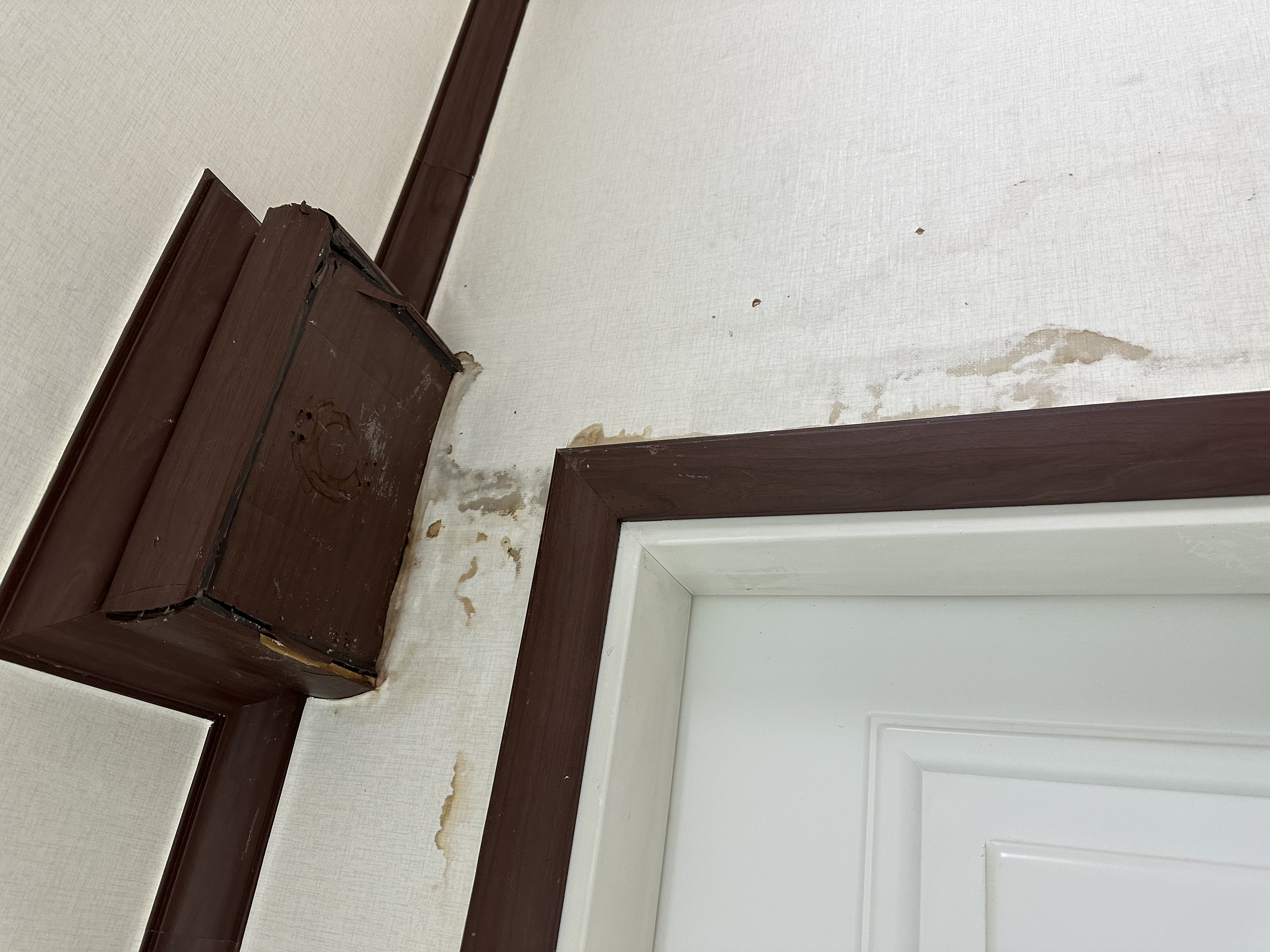 작년 11 이사들어오기전에 현관쪽과 거실배수관쪽에 물이새서 집주인이 수리를 하고 도배를해주고 저희가 이사들어왔습니다