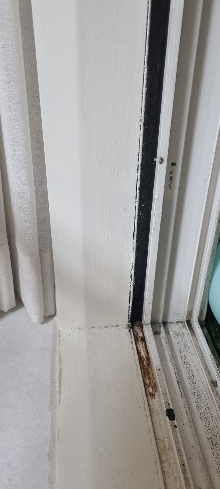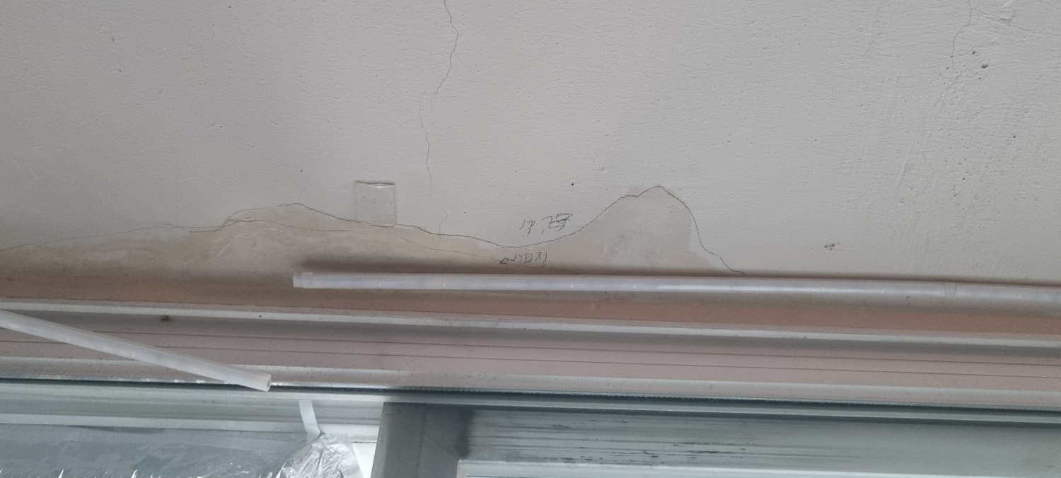 다시 우리집 거실안 샷시천정을 유심히보니 몰딩사이에 갈색물자국있는 근처가 다 물기가 손에 묻었음