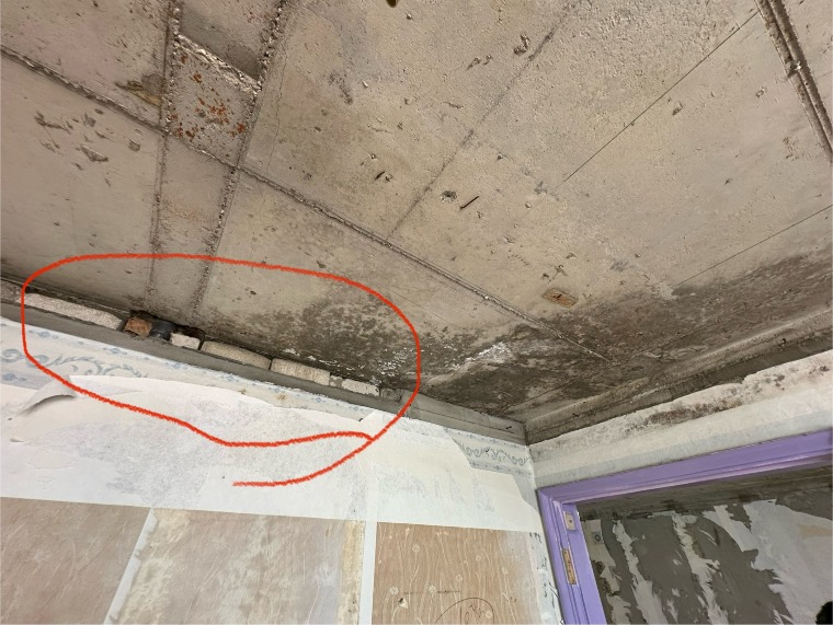 위치로 보아서는 외벽을 통한 누수에 가까운데요. 마감을 뜯기 전에 표면에 얼룩 등의 흔적은 없었나요?