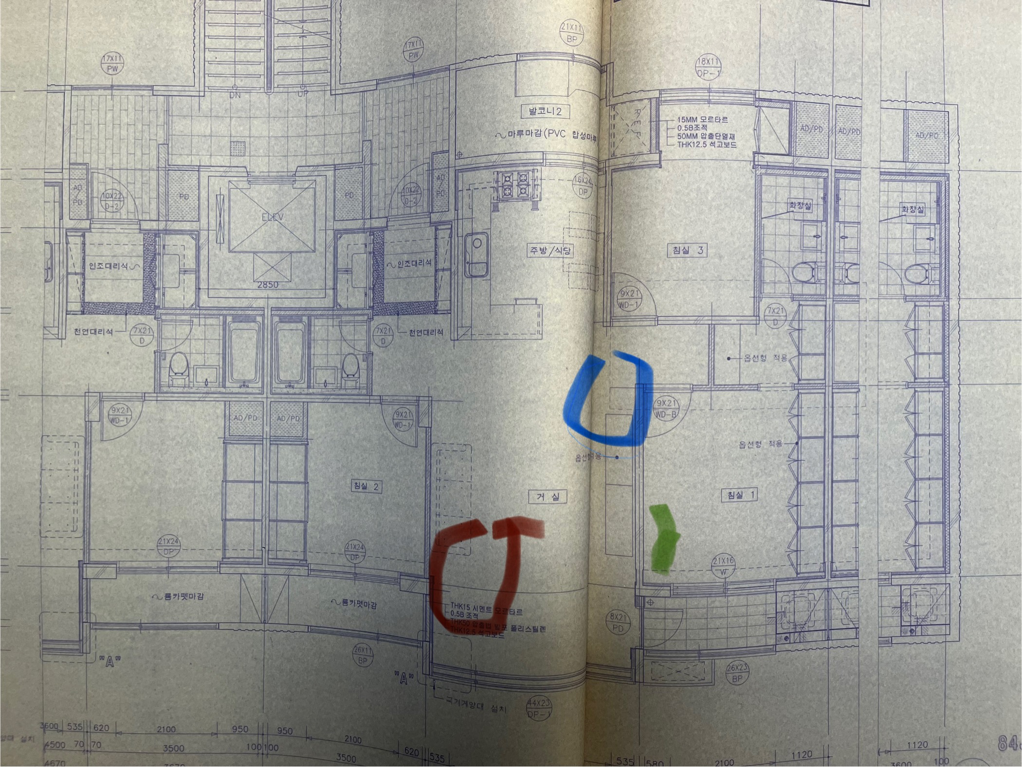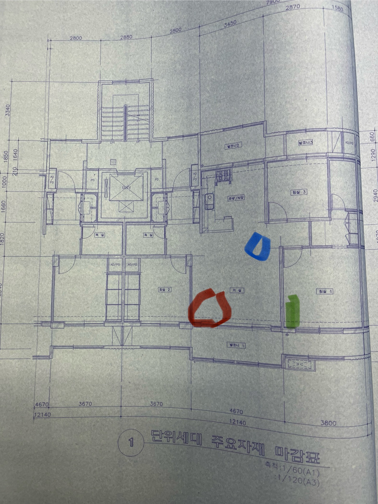 관리사무소에 이야기해서, 보관 중인 준공 도면 중 "세대 확대평면도"라는 것을 사진 찍어 올려 주실 수 있으실까요?