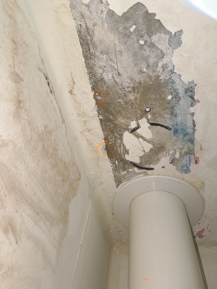 누수지점은 사진속 형광펜으로 칠한 부분입니다.