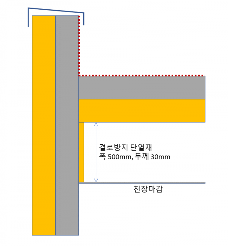 천장 외단열(옥상 단열)의 경우 비용이 높을 것 같아서 외벽은 외단열로 비드법2종3호 100T를 하고, 내단열 중