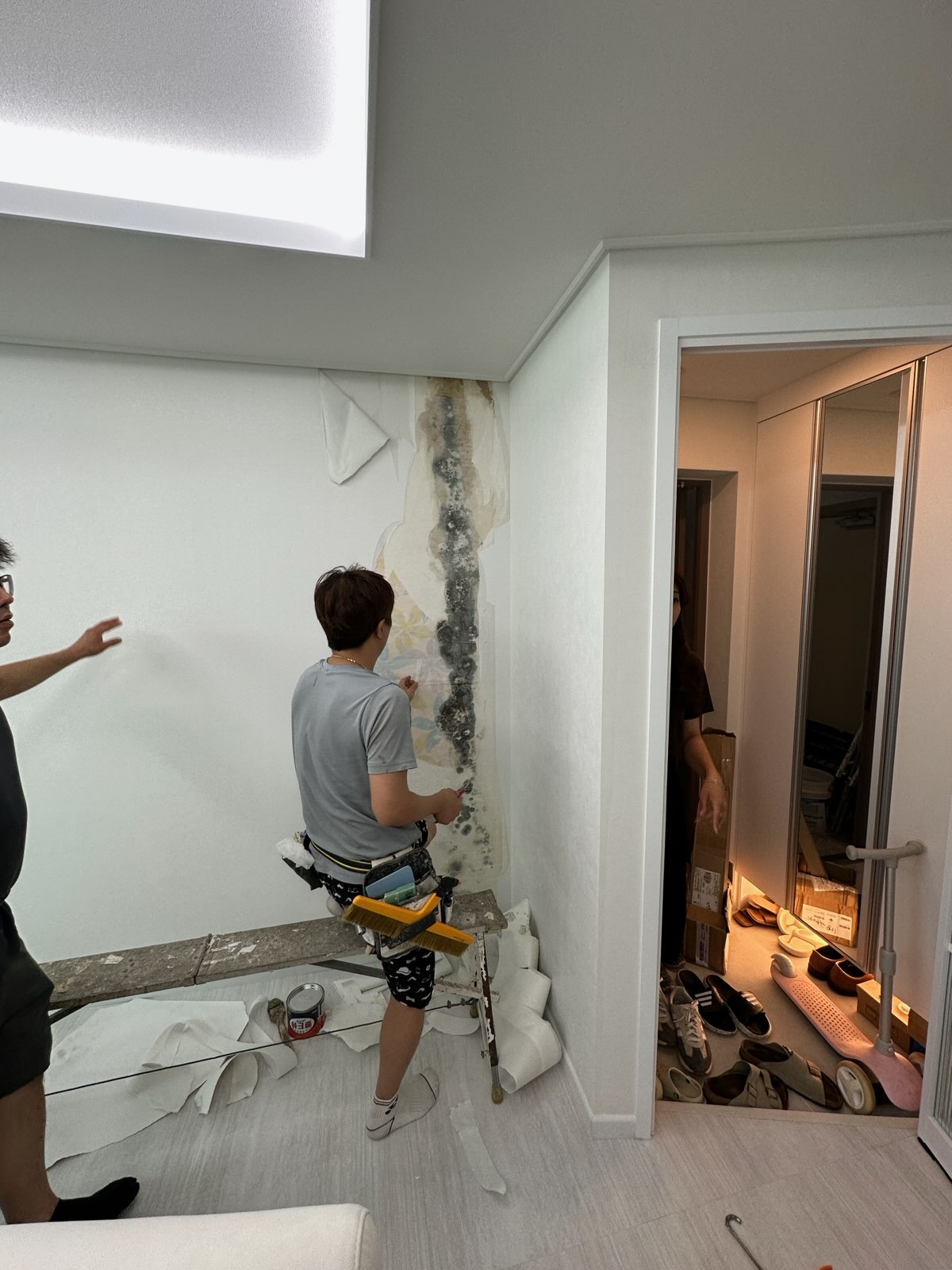 - 실크벽지 걷어내니 물기가 축축하게 떨어짐,