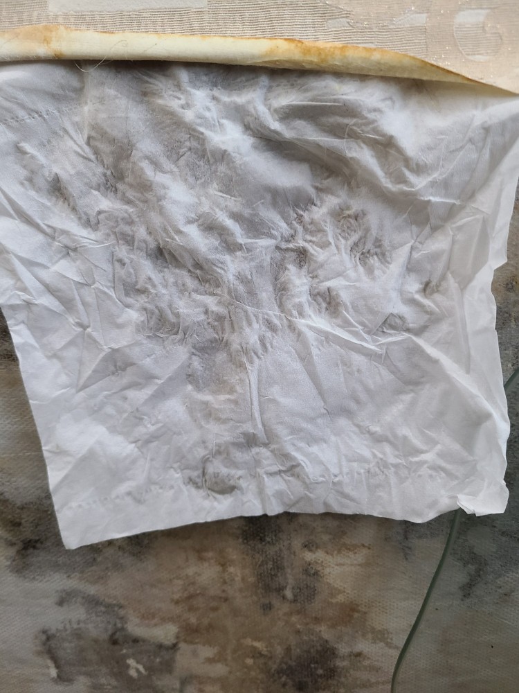 저희는 아파트에 살고 있는데 거실과 방 사이에 있는 내벽 양쪽에 딱 중간 부분부터 곰팡이가 끼어 있는 상태입니다.