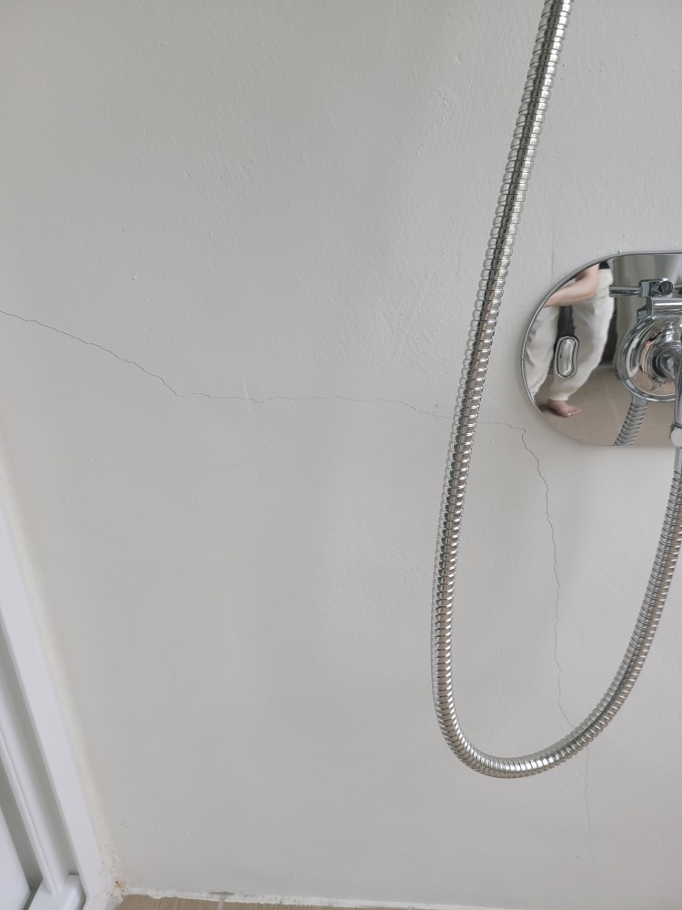 As시기라서 접수 했는데, 와서는 간단한 메꿈과 페인트칠만 하고 가셨는데, 얼마 되지 않아서 같은 곳에 크랙이 또 올라왔어요.