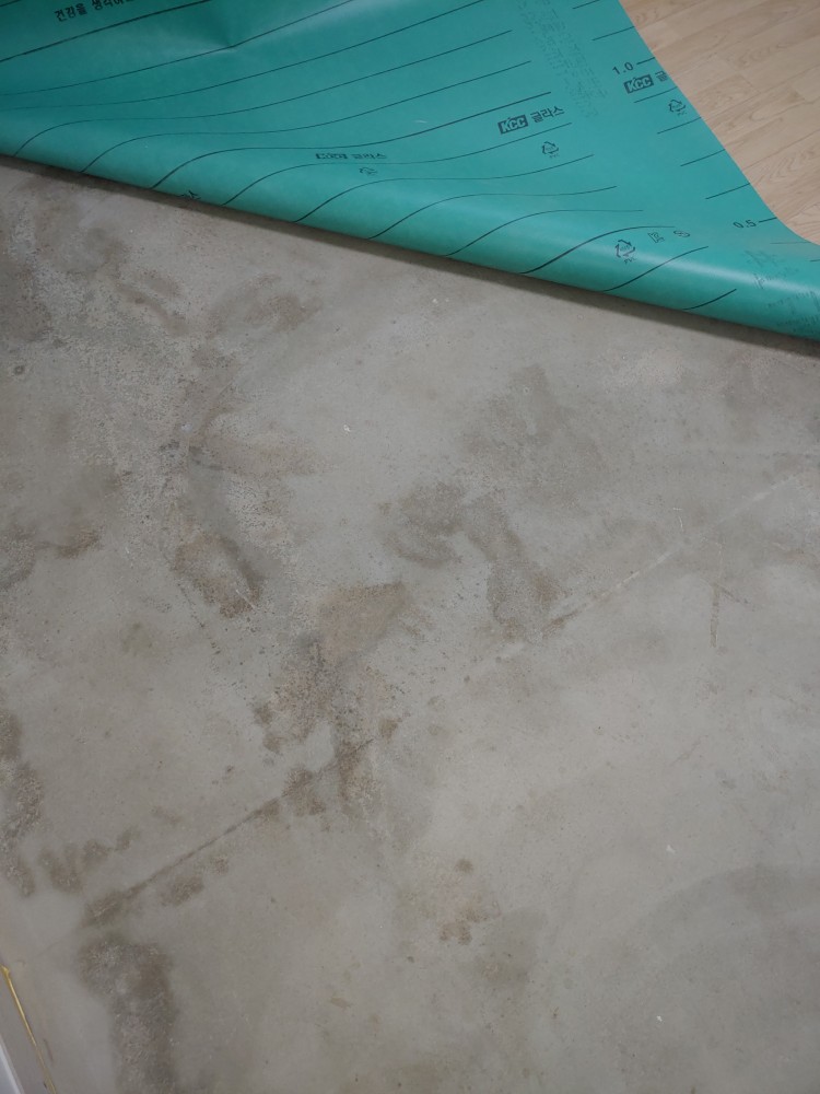 누수일까요? 아님 장판 본드때문에 저런걸까요?