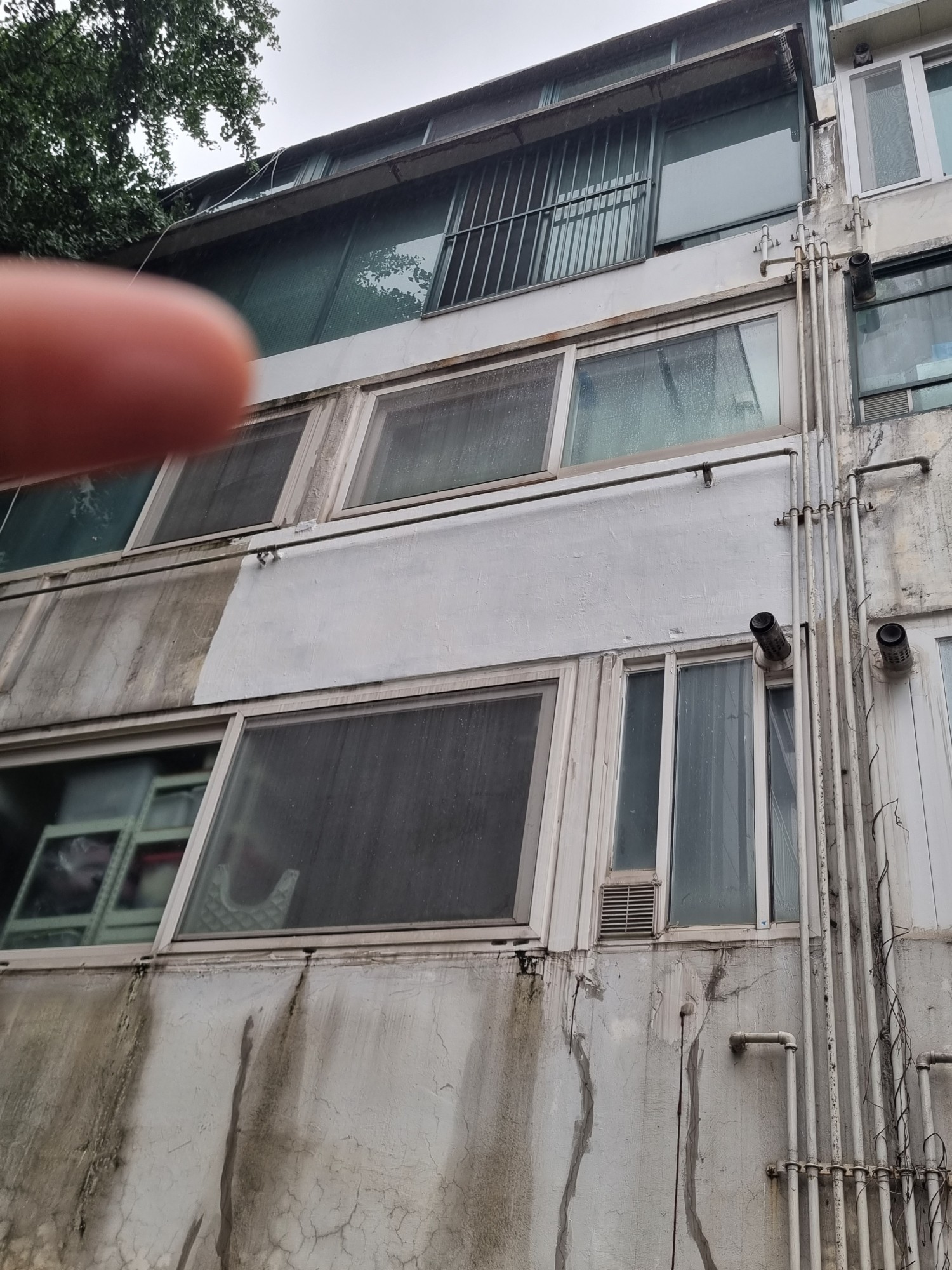 현재 비만 오면 방 안쪽 천장에서 상당히 많은 양의 누수가 발생하고 있습니다. 203  303호 사이 외벽  크랙 점검 받고 보수했는데 변화가 없습니다.   원인을 못찾고 있습니다. 도와주세요.  건물 구조와 누수위치 등 사진에 올렸습니다.