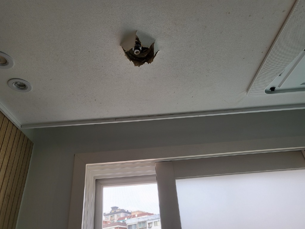 안녕하세요 스프링쿨러 오작동으로 인한 침수가발생했는데요 .지금 아직 스프링 쿨러 교체작업 대기중에있습니다.