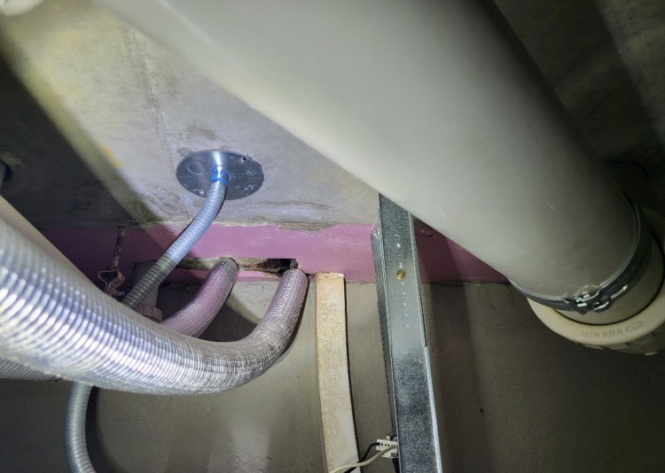 2) 물을 사용하면 누수가 된다고 했는데, 그럼 배수관을  의심할 수 있으나 사진상 누수흔적은 없습니다.