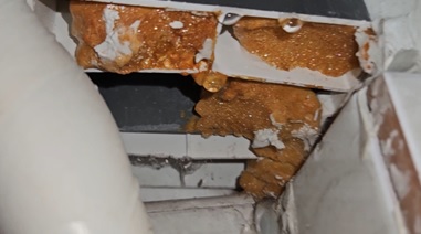 2) 위집샤시의 아래쪽이나 바닥에서 생긴 누수의 물이 내집천장으로 흘러 나오는 경우
