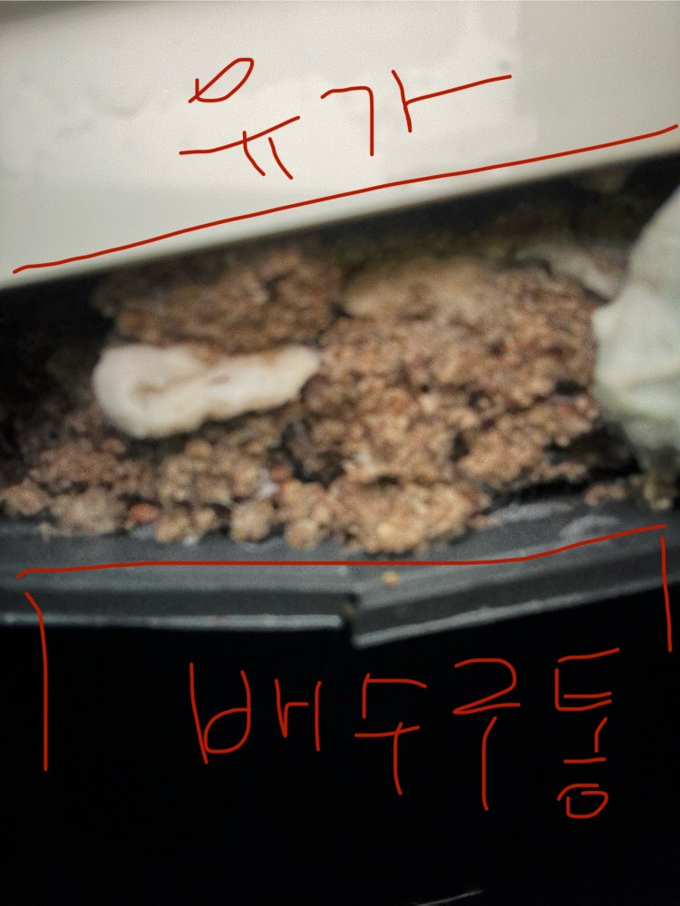 손으로 만지면 축축하고 모래처럼 으스러질 정도로 약해져 있더라구요. 유가랑 배수구플라스틱이랑 대략 5cm 정도 차이 나는 것 같구요.