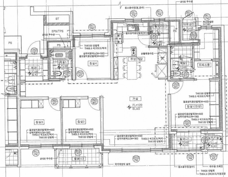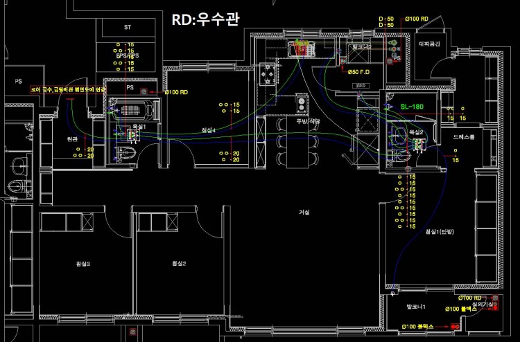 도면은 그렇군요.. 관리소와 이번에 탐지한 업자말로는 드레인이 외부로 노출되어 있다고 하네요. 난방이랑 수도만 매립이라고..