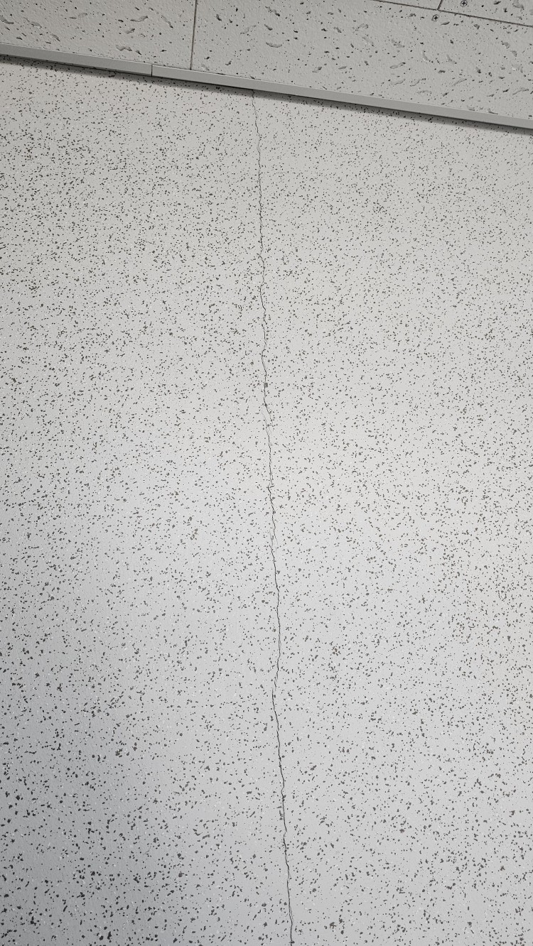 첨부 사진은 5층의 크랙 사진이며, 아래층으로 갈 수록 조금씩 크랙이 더 벌어집니다.