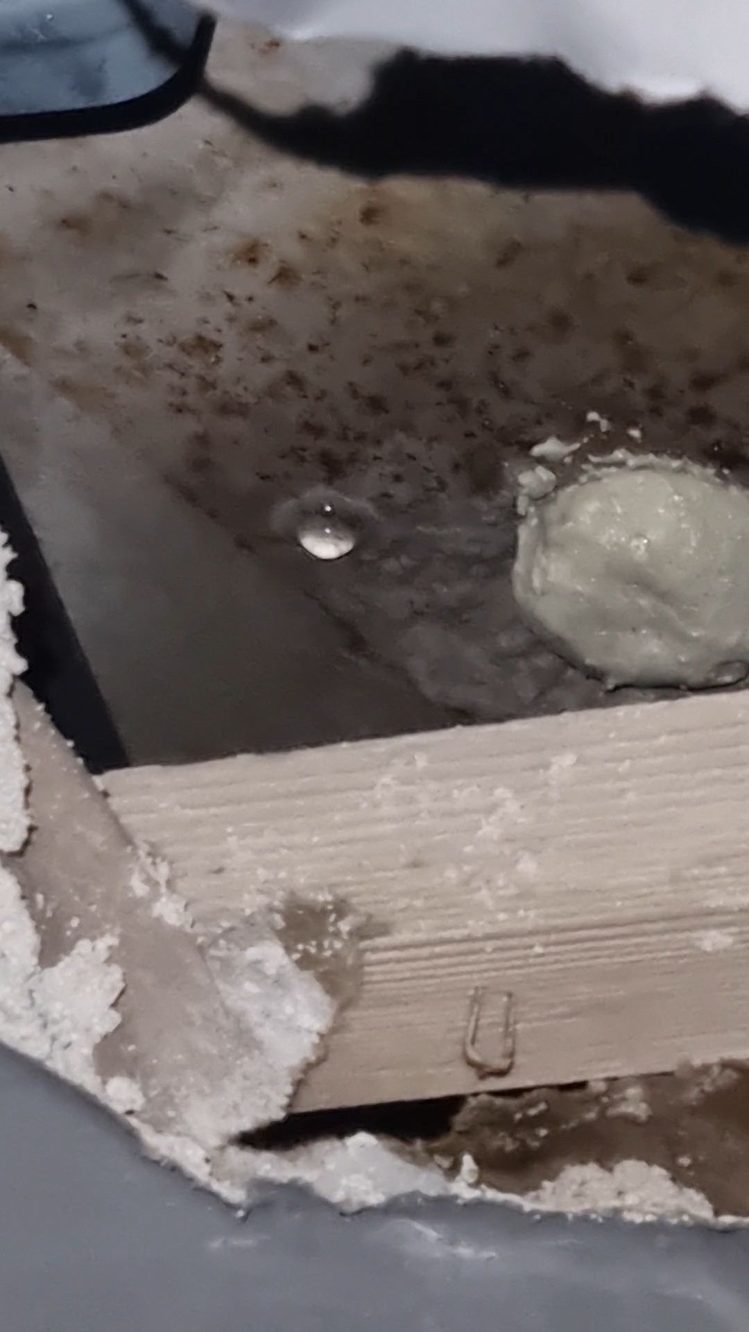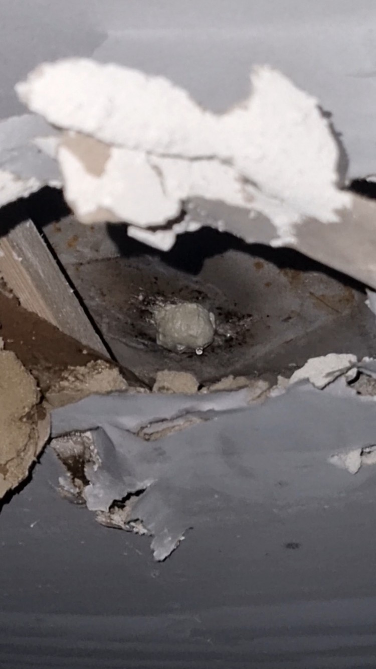 구멍은 현장가서 본결과 작업자가 잘못뚫은거 메꾼거같아요.그래서 폼으로 마감처리한거같고. 윗집이 큰문제인이유가있을까요? 바닥에 물이 고여있어서 그란가요?