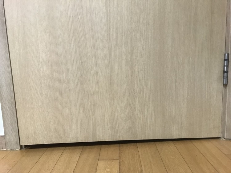 문의 아래 부분에 보이는 틈은 문을 열었을 때 바닥이 워낙 불균형해서