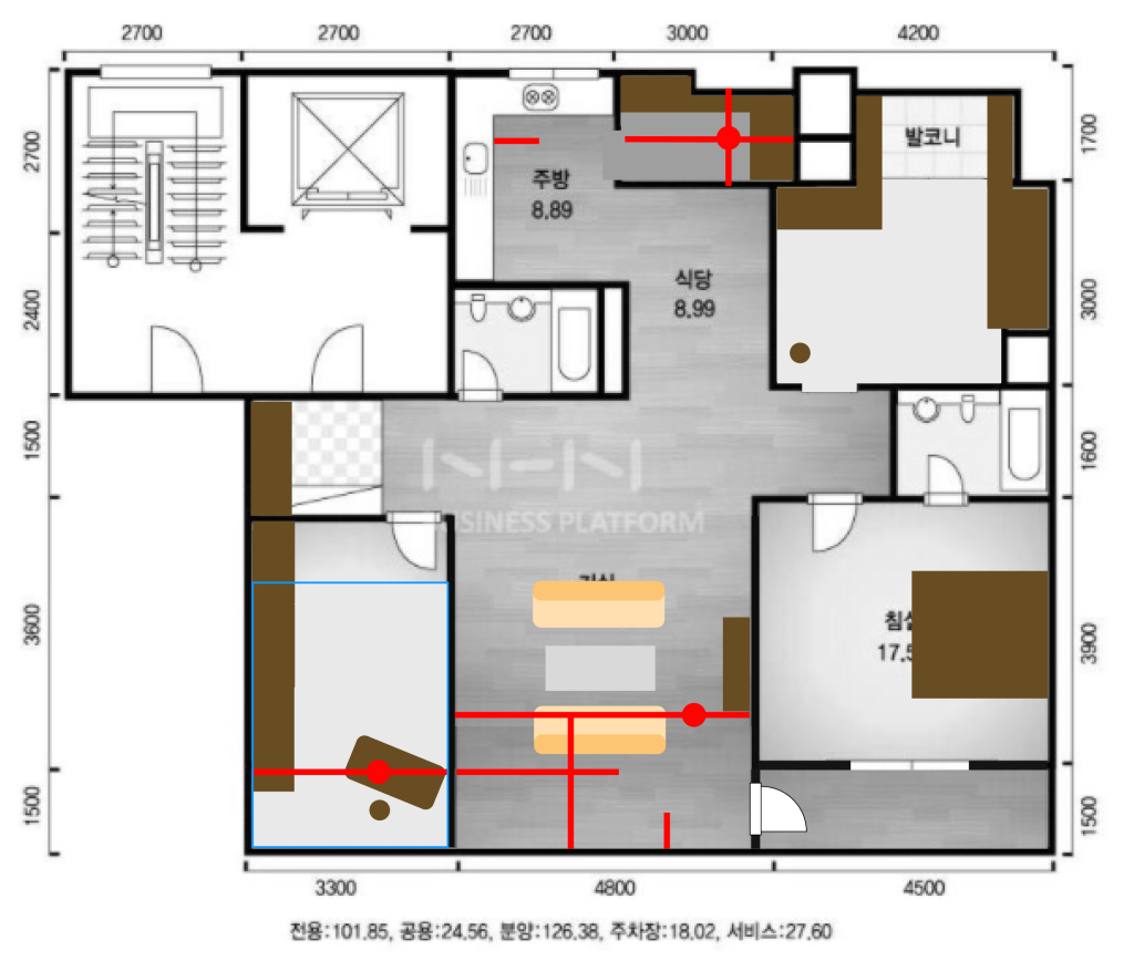 결론은 또 깨집니다. 제가 보기에는 오른쪽 침실있는 조적벽이 붙어있는 라인부터 깨지는거 같아요.