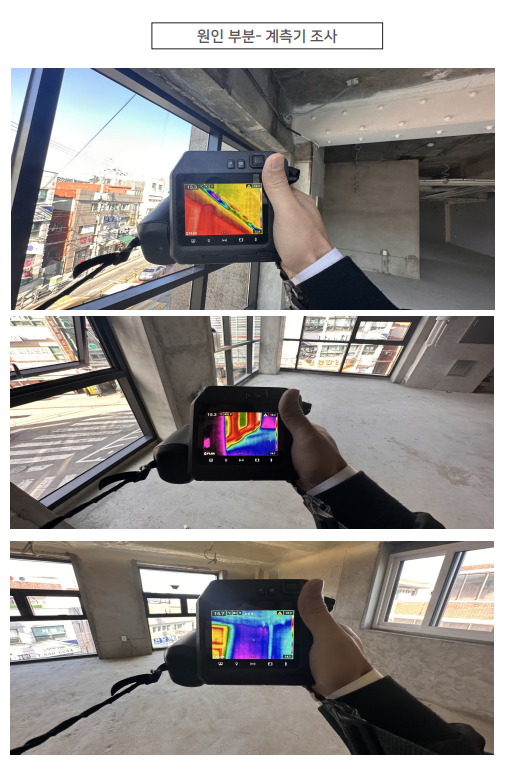 그리고 이런 식의 탐지기를 통한 조사가 신뢰할만한지도 궁금합니다. 파란색 보라색 계열이  물을 많이 함유한 것이라는데, 그렇다면 각층 바닥면도  창호를 통해 스며든 물이 들어온 것이라고 봐야하는 것인지요