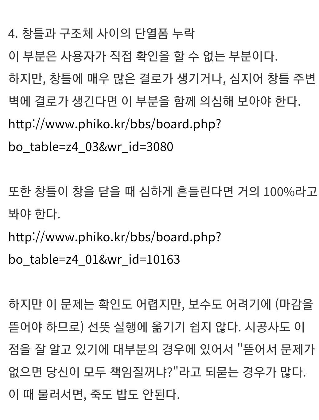 관리자님~ 이전 이중창 결로 관련 글에서 창을 닫을 때 흔들리면 단열폼 누락으로 볼 수 있다는 글을 보았는데 제가 잘못 이해했을까요???