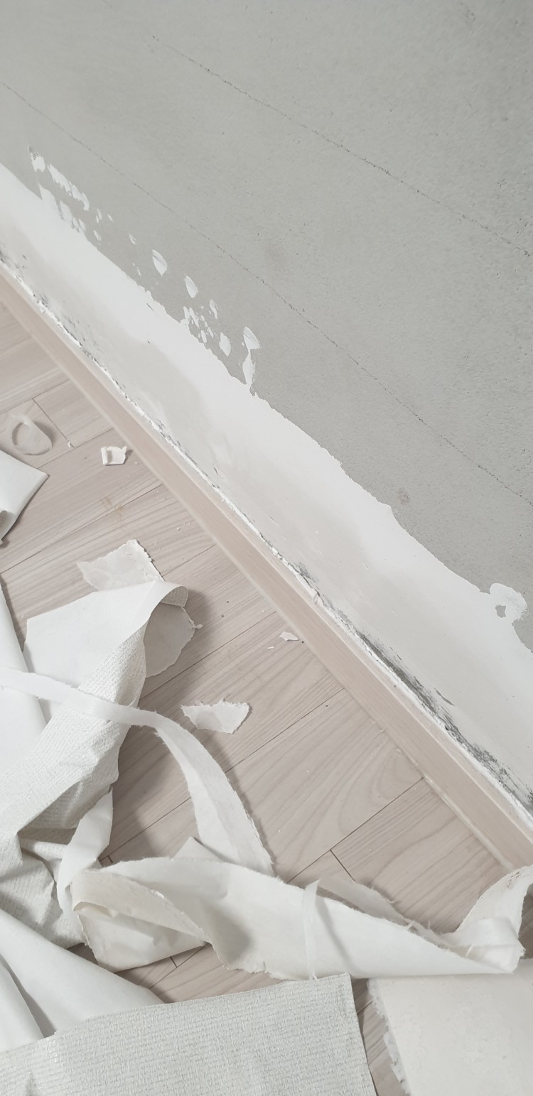 입주하는 아파트에 도배 하자 보수 중 벽 아래쪽에 결로를