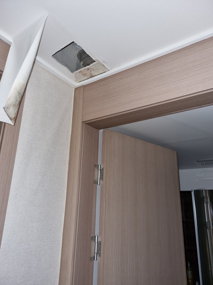 작년 12월 24일 거실 화장실 문앞 천장에서 누수가되는것을 확인했으며, 1시간에 5방울 정도씩 물이 떨어 졌습니다.