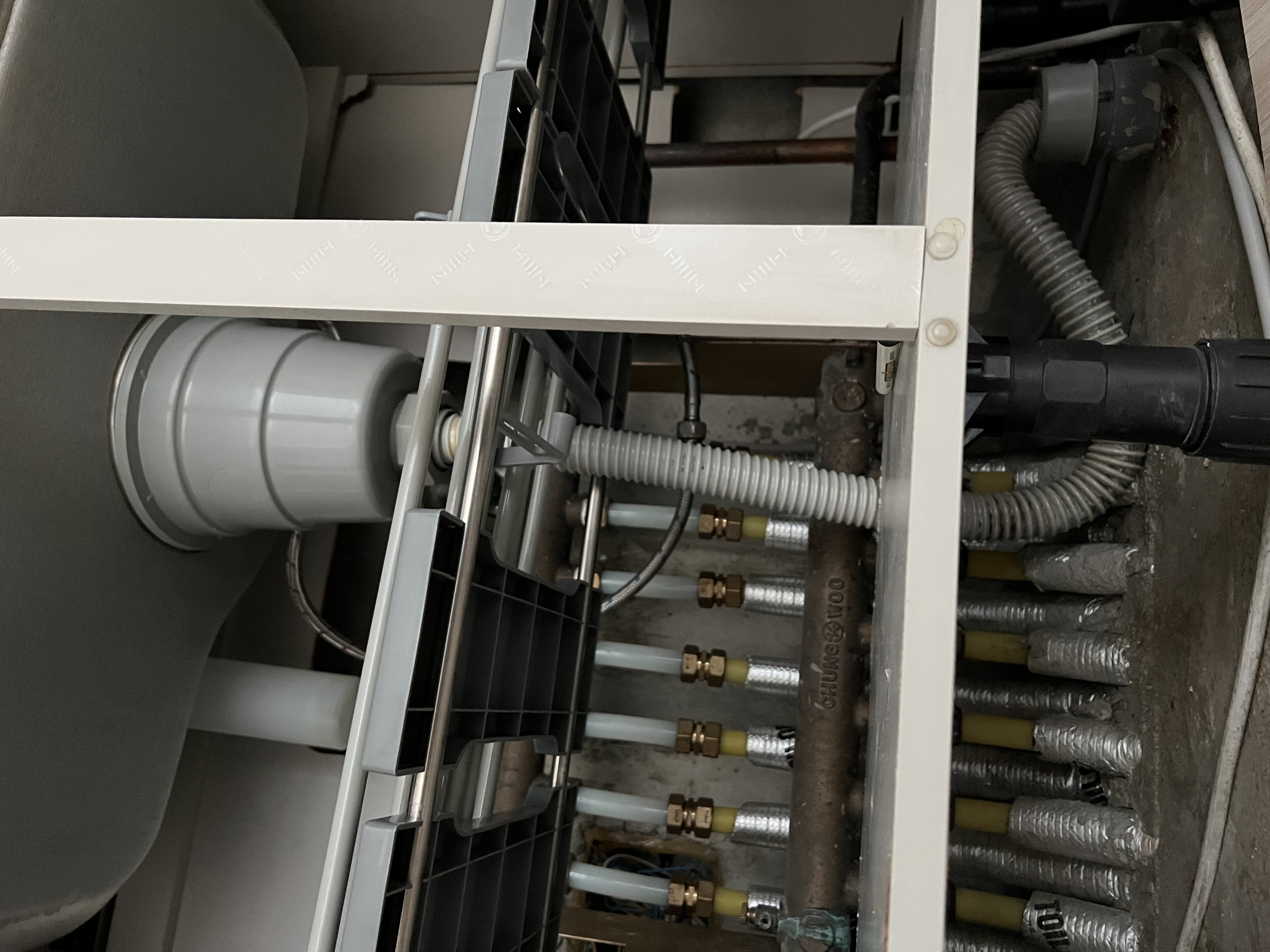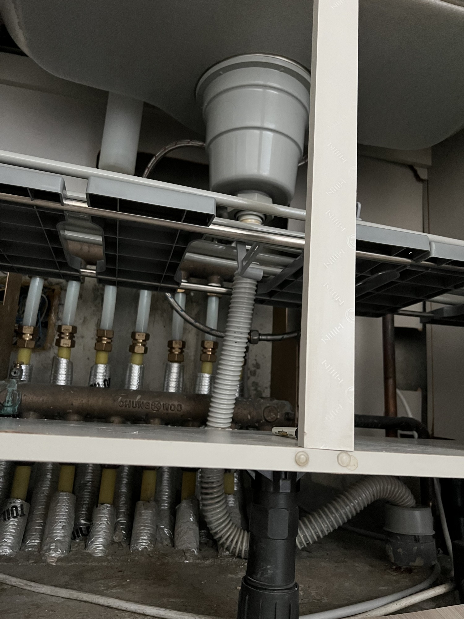 두번째는.. 싱크대 하부의 (사진에 보이는) 주름관이 너무 많이 늘어져 있는 경우인데, 확률은 낮아 보입니다.