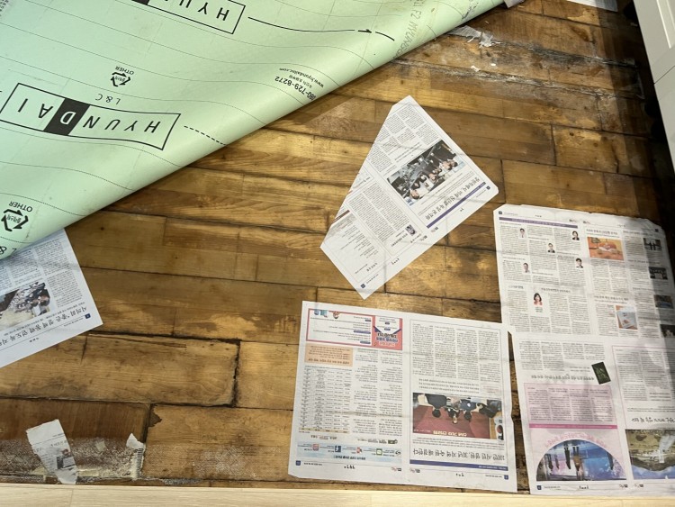 3월 이사를 하고 쿰쿰한 냄새때문에 장판을 걷어보니 마루 사이로 물이 올라오고 젖어있었어요.