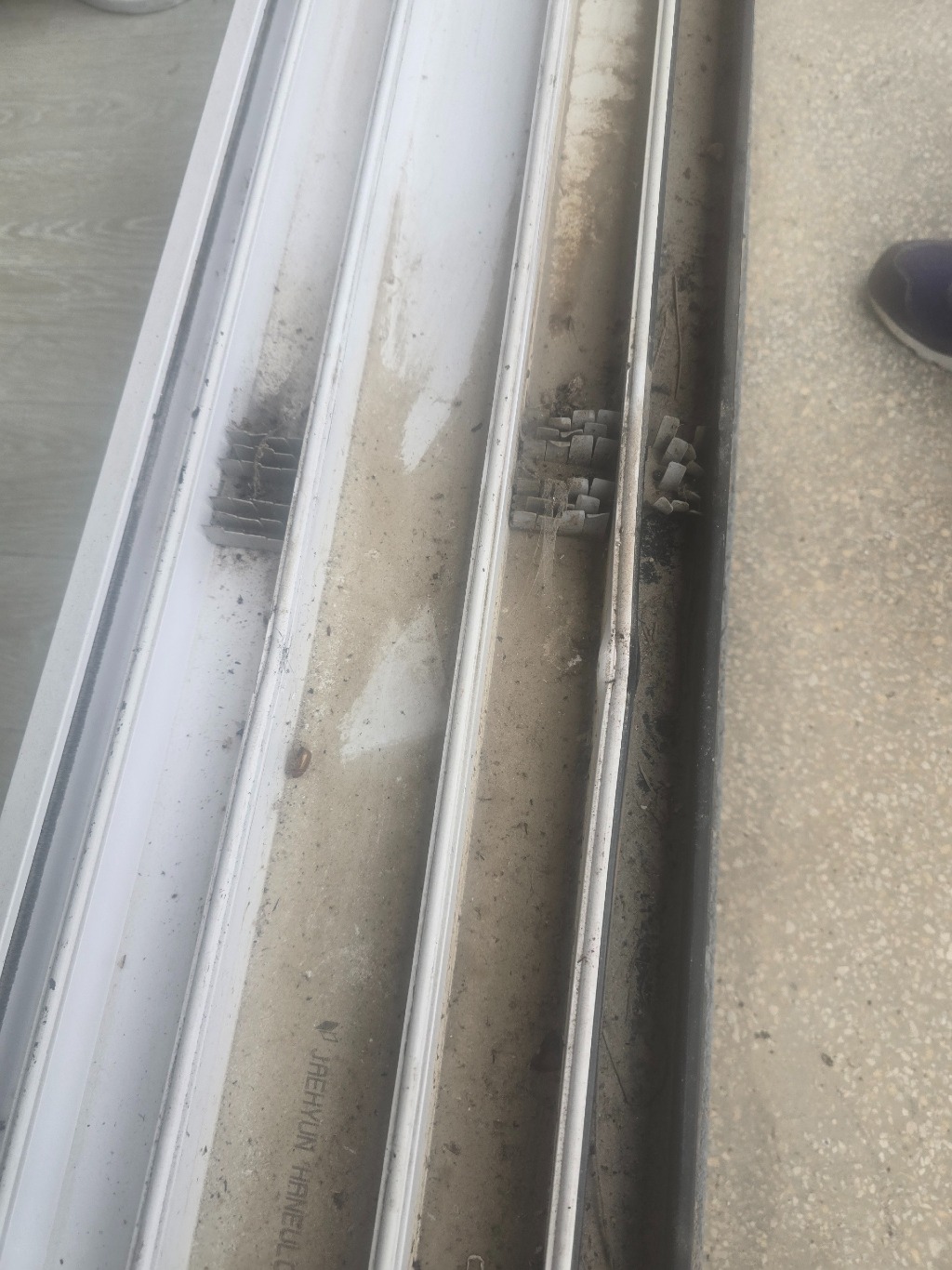 이중창 3W ,22T 그린투명.. 가운데창 로라있는 자리에만 함몰이 생겼습니다.