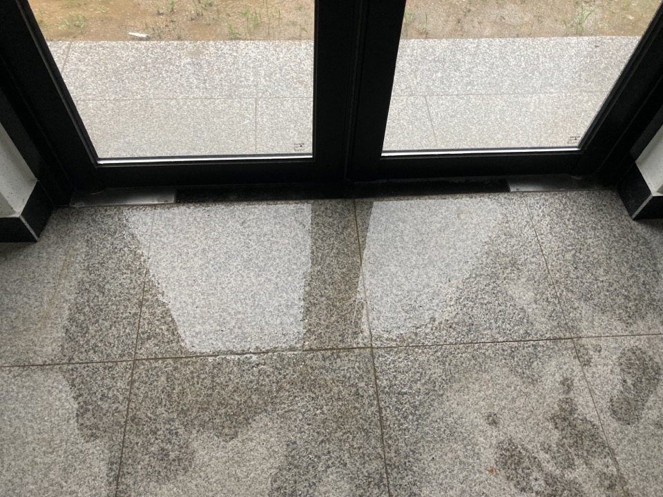 2.바깥면과 공동현관문과 내부가 구배가 거의 평행입니다.. 그래서 물이 더 유입이 되는걸까요? 사진상 왼쪽이 바깥 오른쪽이 안쪽