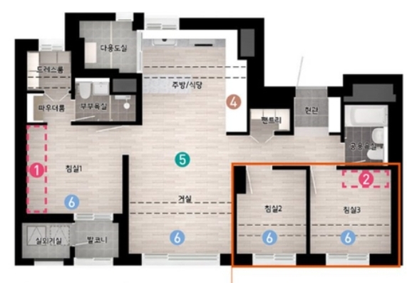 올려주신 이 사진에서 젖은 부위가 어느 벽면인지 표시 부탁드립니다.
