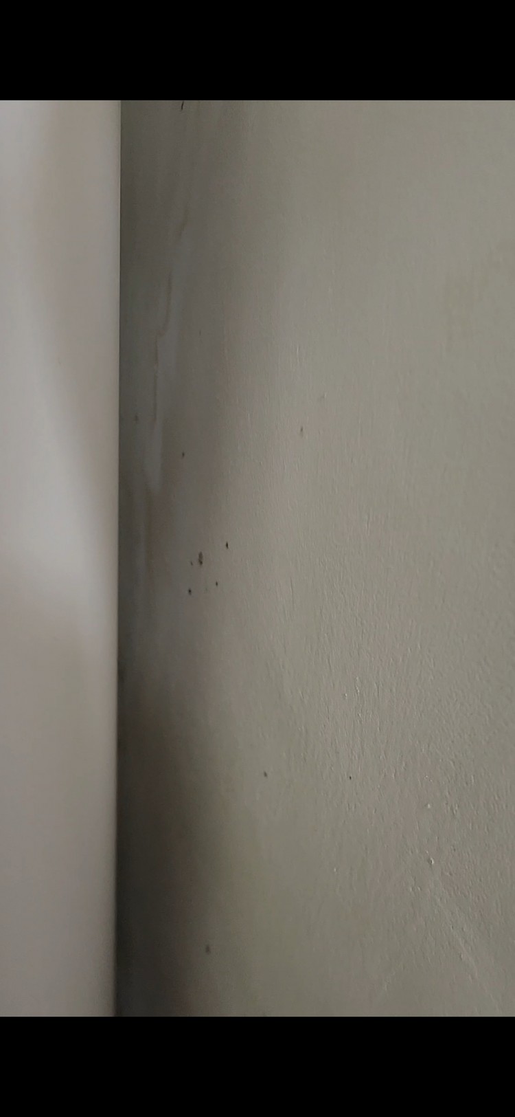 반대편 안방화장실 천장벽은 작년12월 에 작게 젖어있던 부분을 못보고 넘겻다가 다용도실 얼룩을 보고 문제를 인식했습니다 이제 벽 전체로 거의 확장되어 마르지가 않습니다.