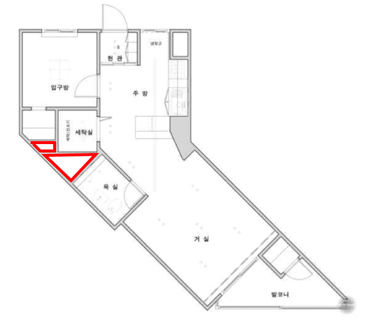 이 삼격형 공간을 지나는 그 한덩어리의 배관 등 틈새로 냄새가 이동하는 것 외에는 달리 짐작 가는 것이 없습니다.
