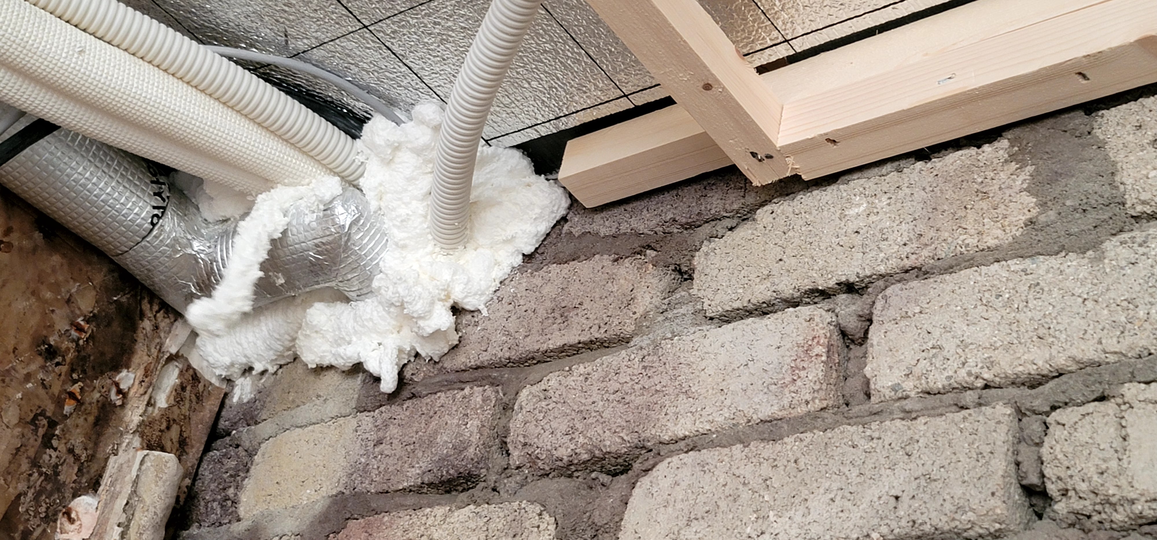 2. 주방후드 혹은 화장실 환풍기가 연결되는 메인배관이 관통되는 파이프샤프트 벽체가 기밀하지 않아 파이프샤프트 내부의 공기가 실내로 유입되는 경우입니다.