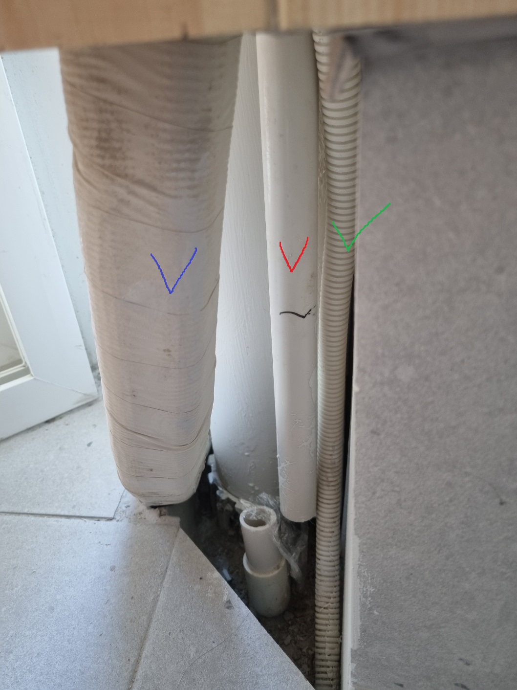 *파란색 체크는 실외기 관. 초록색 체크는 인터넷 선이라고 합니다.