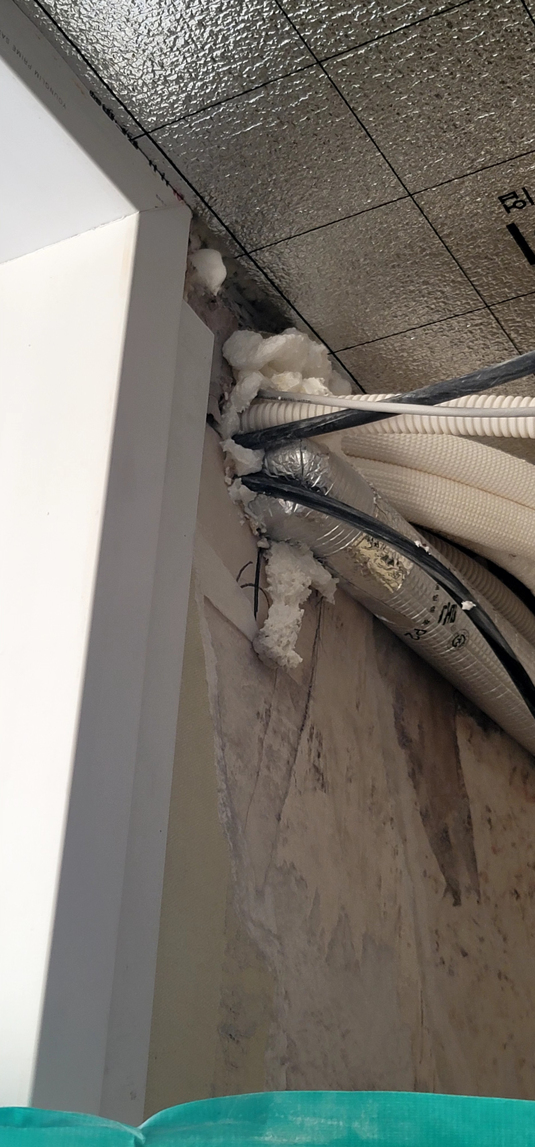 한달 전 리모델링 공사를 했습니다. 시스템 에어컨 설치를 위해 안방 천장에 일부 단을 내렸고, 공사가 끝난 후 부터 에어컨이 설치된 단 내림 천장에서 매캐한 냄새(하수구 냄새, 가스 냄새?) 가 납니다.