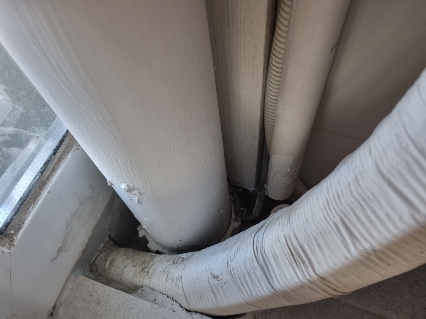 그나마 가능성이 있는 것은.. 에어컨 배관은 여러 다발의 배관을 하얀색 테이프로 감아서 한 덩어리로 움직이는데...
