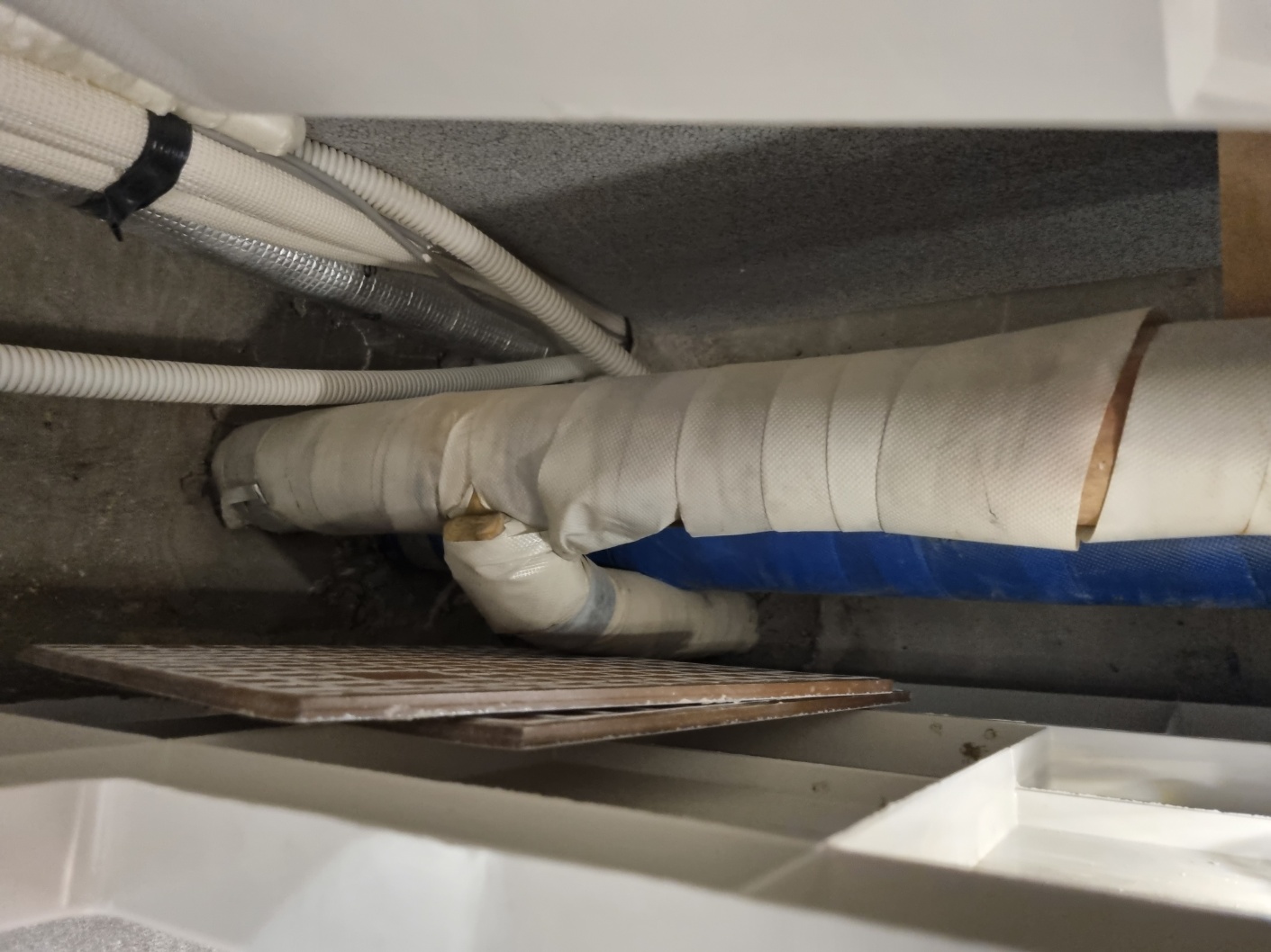 저희도 그렇게 생각하여, 아래 첨부파일에 빨간색으로 체크 된 에어컨 배관을 우수관에 바로 꽂아놨길래, 업체측에 잘라달라고 요청하였으나 냄새는 계속 났습니다.