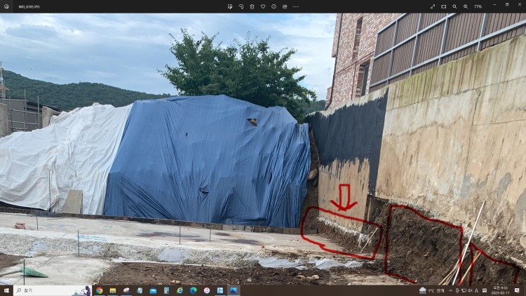 제가 올린 사진을 보시면, 저희집 옹벽 밑으로 옆집이 땅을 파서 기초공사를 하였는데,