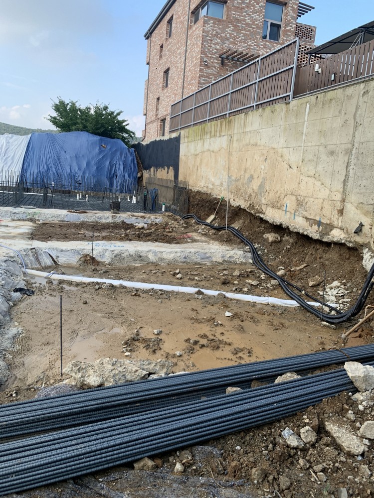저희집은 옹벽에서 1m정도 띄어서 건축한 집입니다.