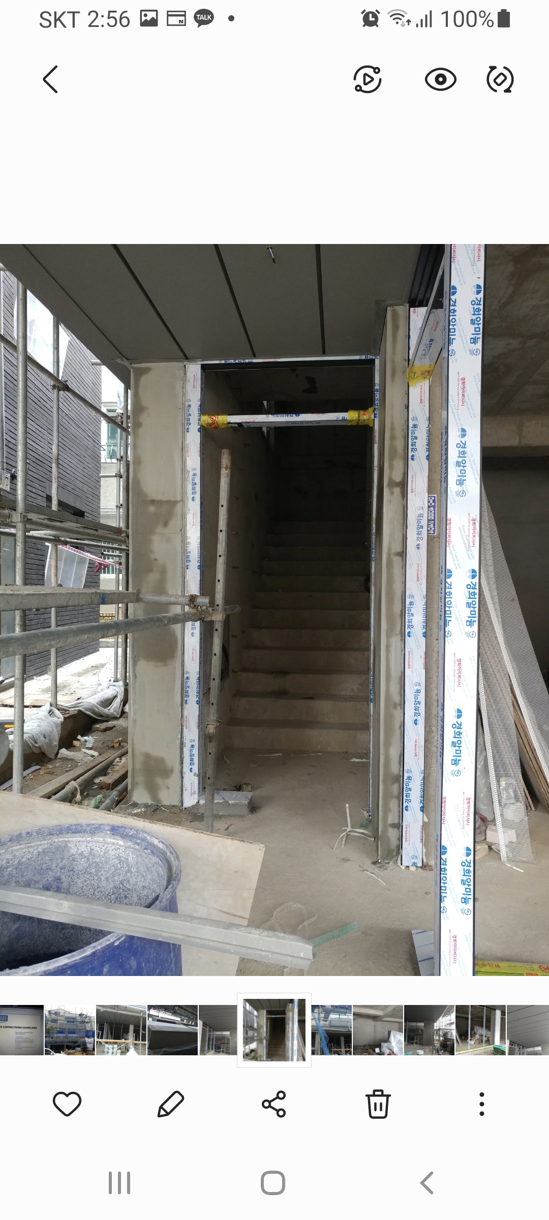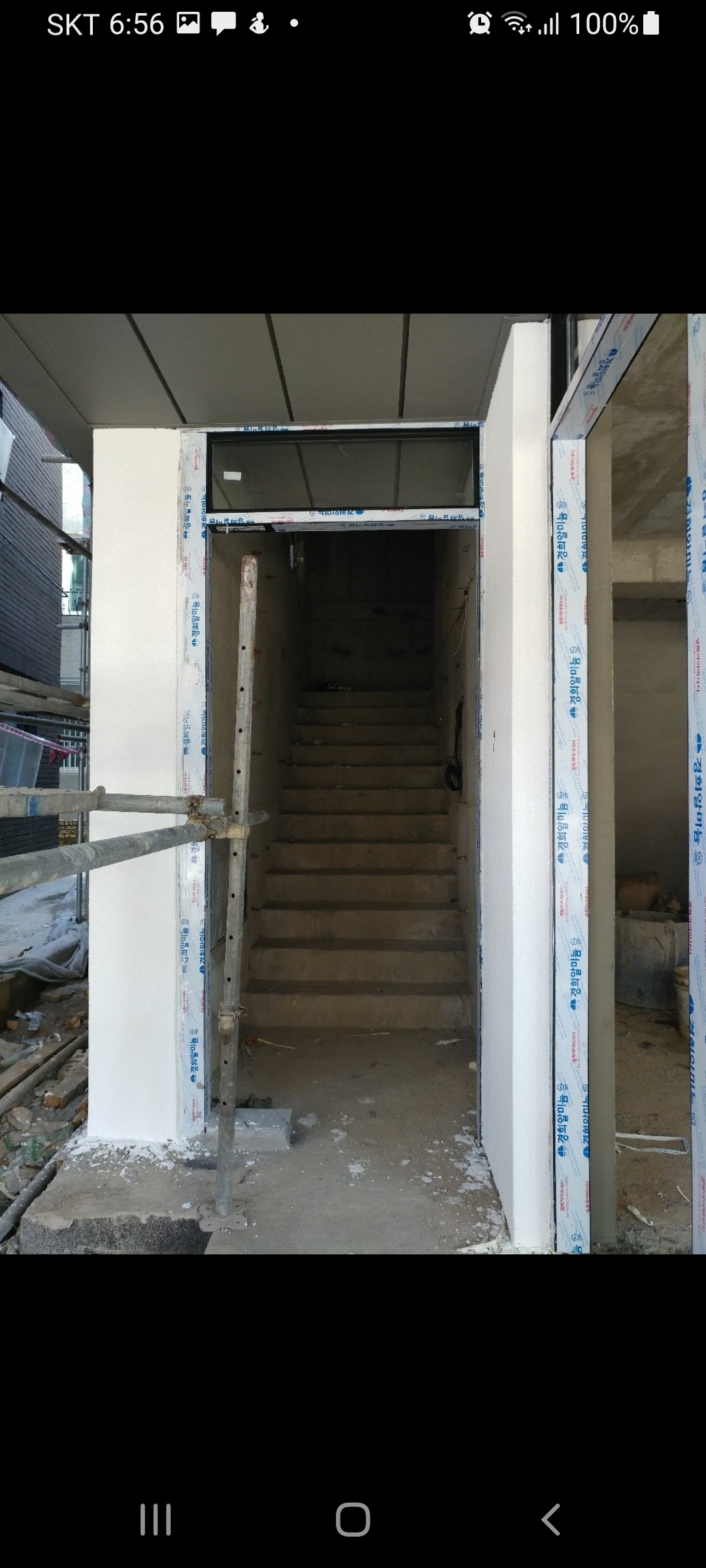 4. 사진 봐서는 계단실 입구 석재 바닥 끝부분이 2층 처마라인과 비슷합니다. 강우시 측면으로 우수 들어올 가능성도 있습니다.