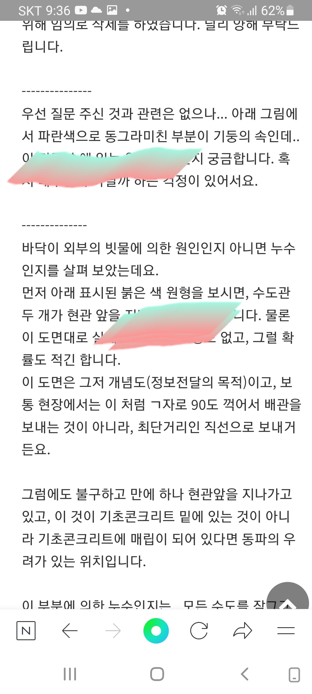 그럼에도 불구하고 만에 하나 현관앞을 지나가고 있고, 이 것이 기초콘크리트 밑에 있는 것이 아니라 기초콘크리트에 매립이 되어 있다면 동파의 우려가 있는 위치입니다.