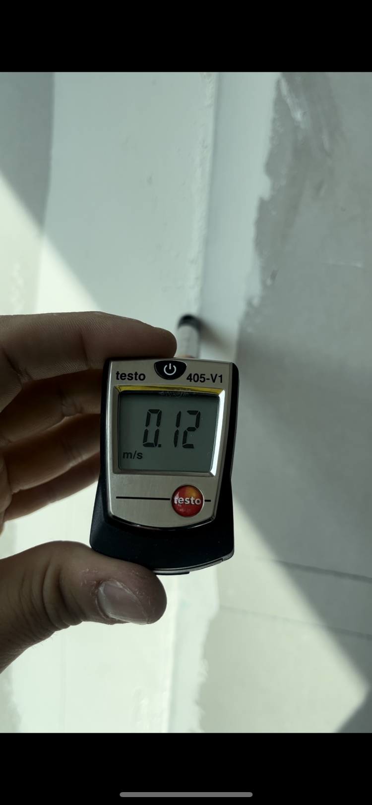 모서리는 벽보다 통상 약 3도 정도 온도가 낮습니다. 그러므로 모서리에서는 콜드드레프트가 잡히는 것이 정상이고, 지금의 속도는 정상의 범위에 있다고 보여 집니다.
