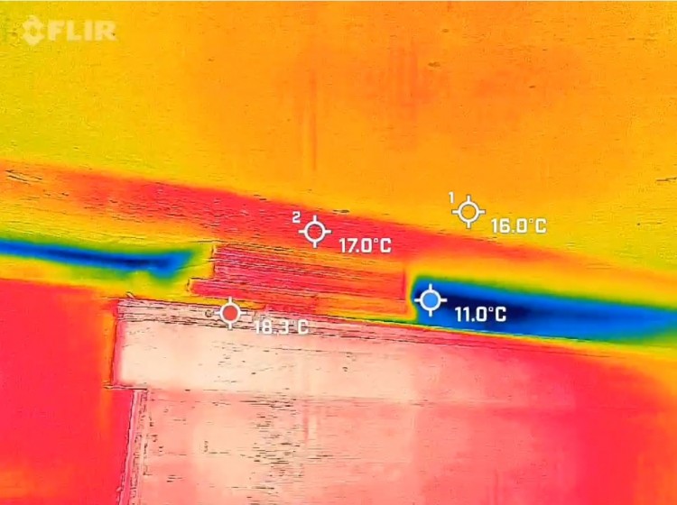 @ 아이소핑크 물맺히는 천장(파랗게 온도저하)-->우리집(아랫집)단열미흡?기밀떨어짐?아님 윗층 결로수고임으로 열화상카메라에 저렇게 나오는것인지요?