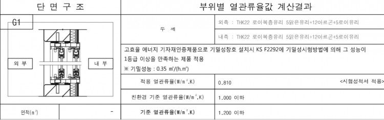 2. 만약 녹색건축 본인증에서 성능내역서의 숫자로 인증을 받았는데, 실제 들어간 창호가 다른 것이라면 문제가 됩니다. 다만 그럴 확률은 낮아 보입니다. 창호의 시험성적서를 제출하기 때문에 결과적으로는 현장의 창호와 시험성적서를 일치시켜야 합니다.