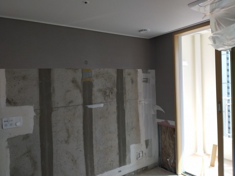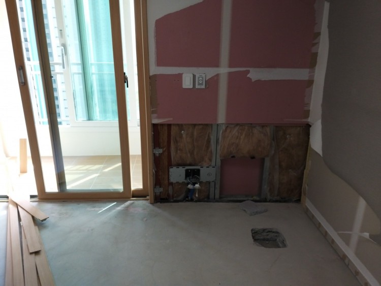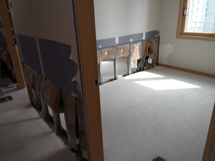찍어둔 예전 사진을 보니 가벽구간 글라스울만 대충 말리고 석고보드로만 마감한듯 합니다.
