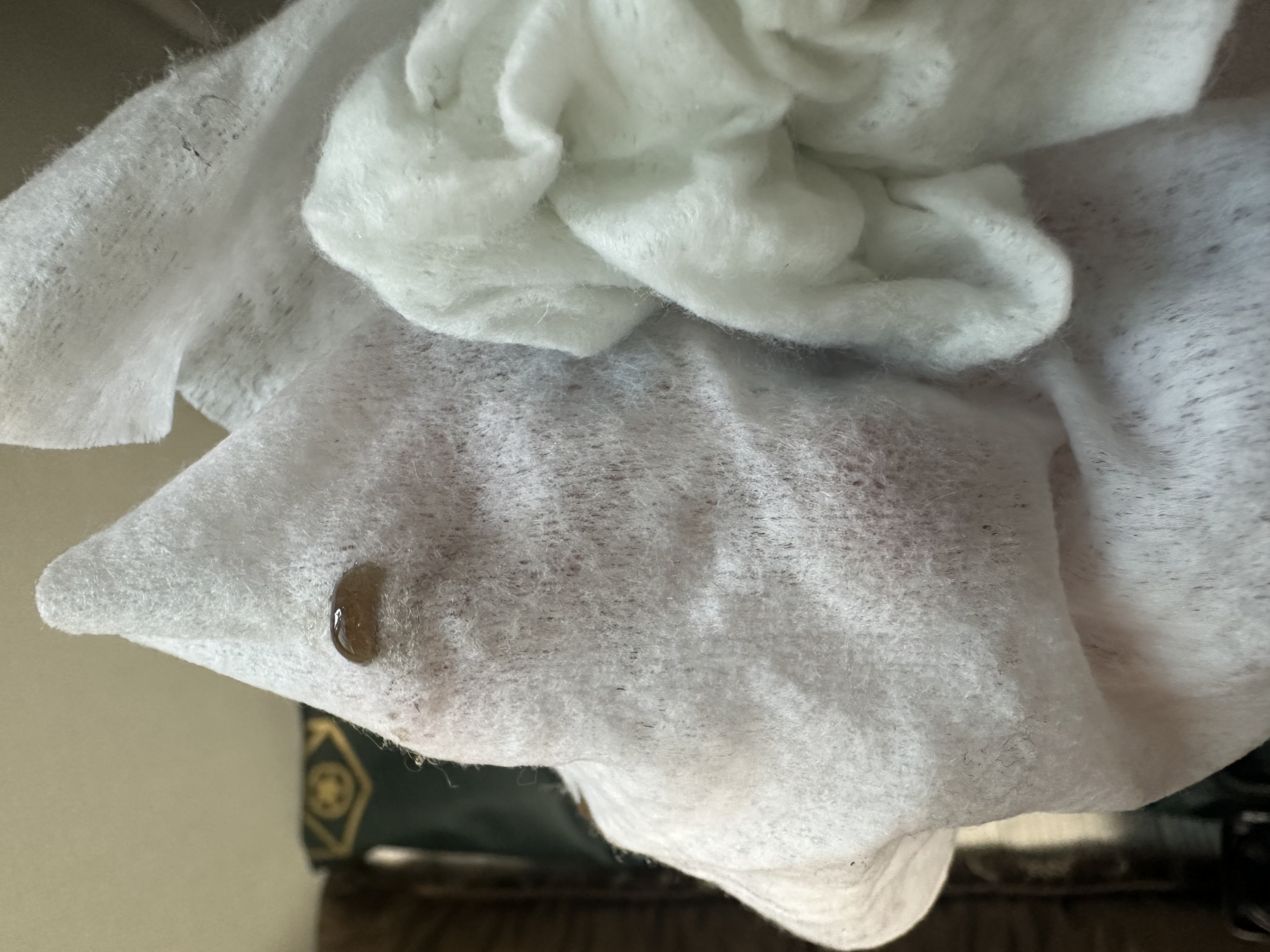 사진 하나 더 추가합니다 액이 이런느낌이에요  발견은 오늘했는데 이미 좀 굳은 느낌입니다