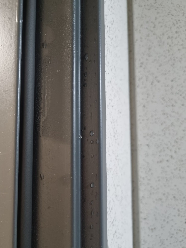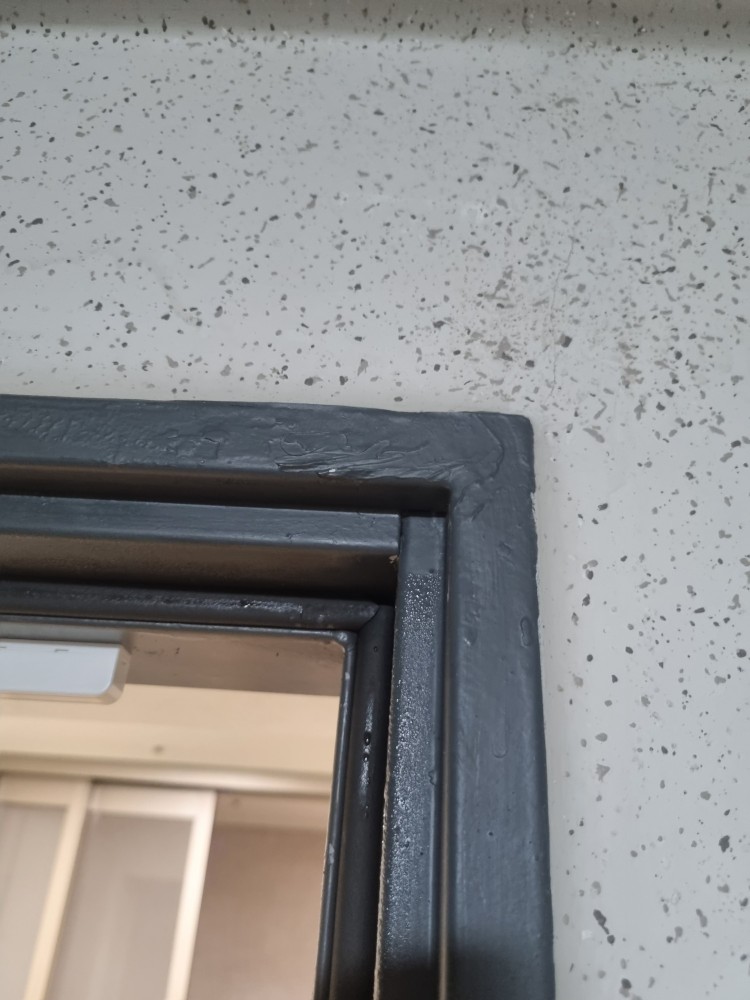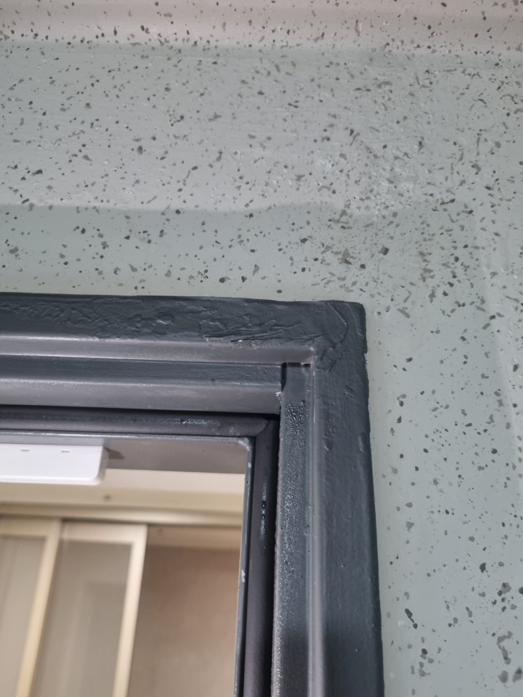 현관문 틀 표면이 너무 울퉁불퉁하고 이상합니다. 그리고 틈이 있어 보입니다. 그래서인지 결로가 현관문 앞밖 전체적으로 생깁니다. 한번 봐주시면 감사하겠습니다.