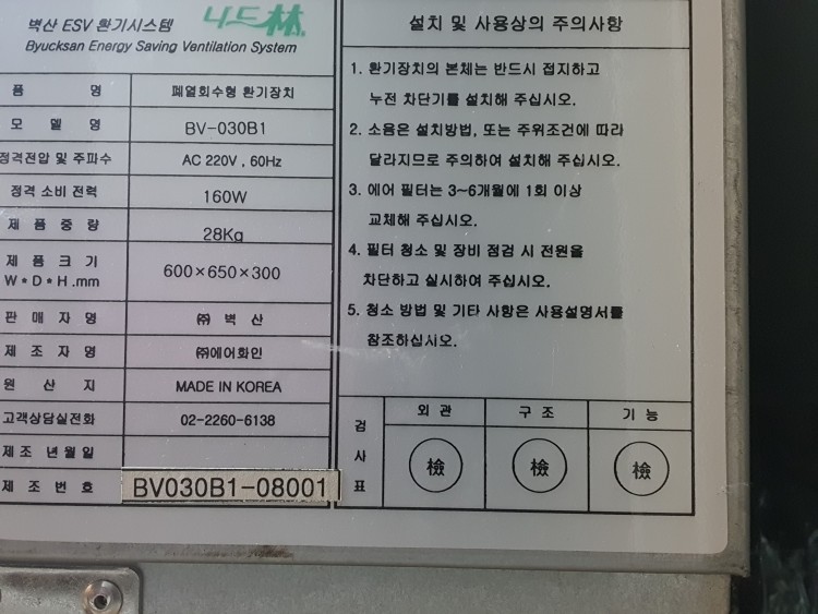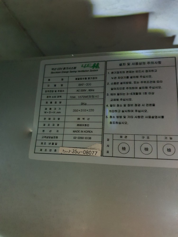 판매사 벽산 나드림 (제조사 에어화인) BKF-350, BV-030B1 이라는 두가지 모델입니다.