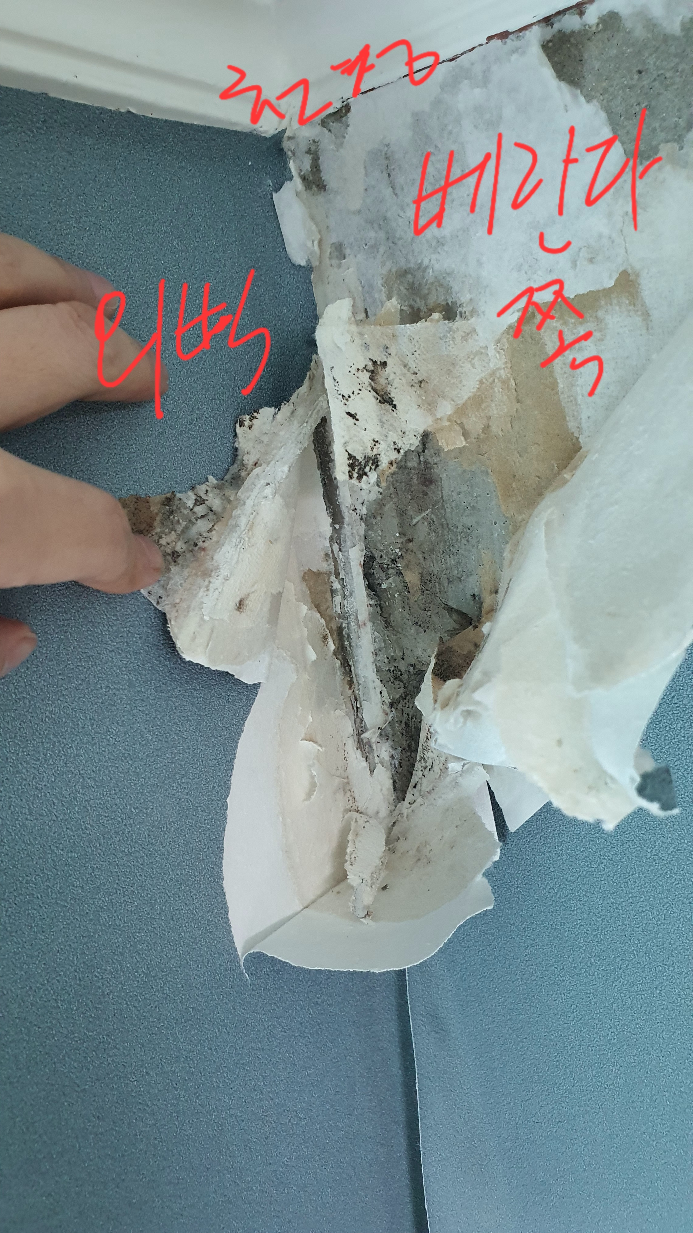 "방 외벽쪽 모서리 균일이 있고 틈이 좀 있었는데 인테리어할때 문제없이 메웠다고 했는데 그부분이 결로가 생기고 벽지가 흠뻑 젖어 있거든요. 그부분은 어떤식으로 메워야할까요?"