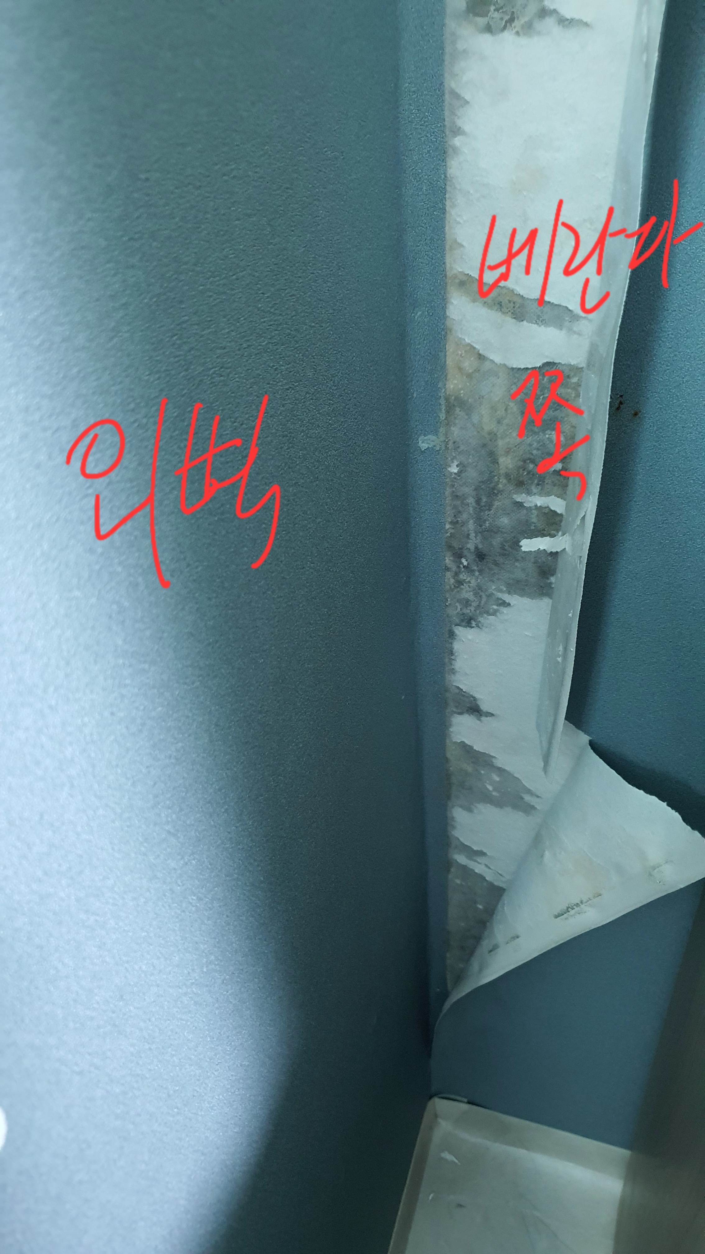 방문 모서리사진 첨부합니다. 모서리에서 베란다쪽 면이 곰팡이가 심하고 젖어있습니다. 메움을 그냥 단순히 실리콘으로만 하신거 같아요. 다음주 도배지 광폭 합지로 재시공 하려고하는데 그전에 저 벽체를 뜯어서 말리고 빈틈을 다시 메워야 하는거 아닌가요?