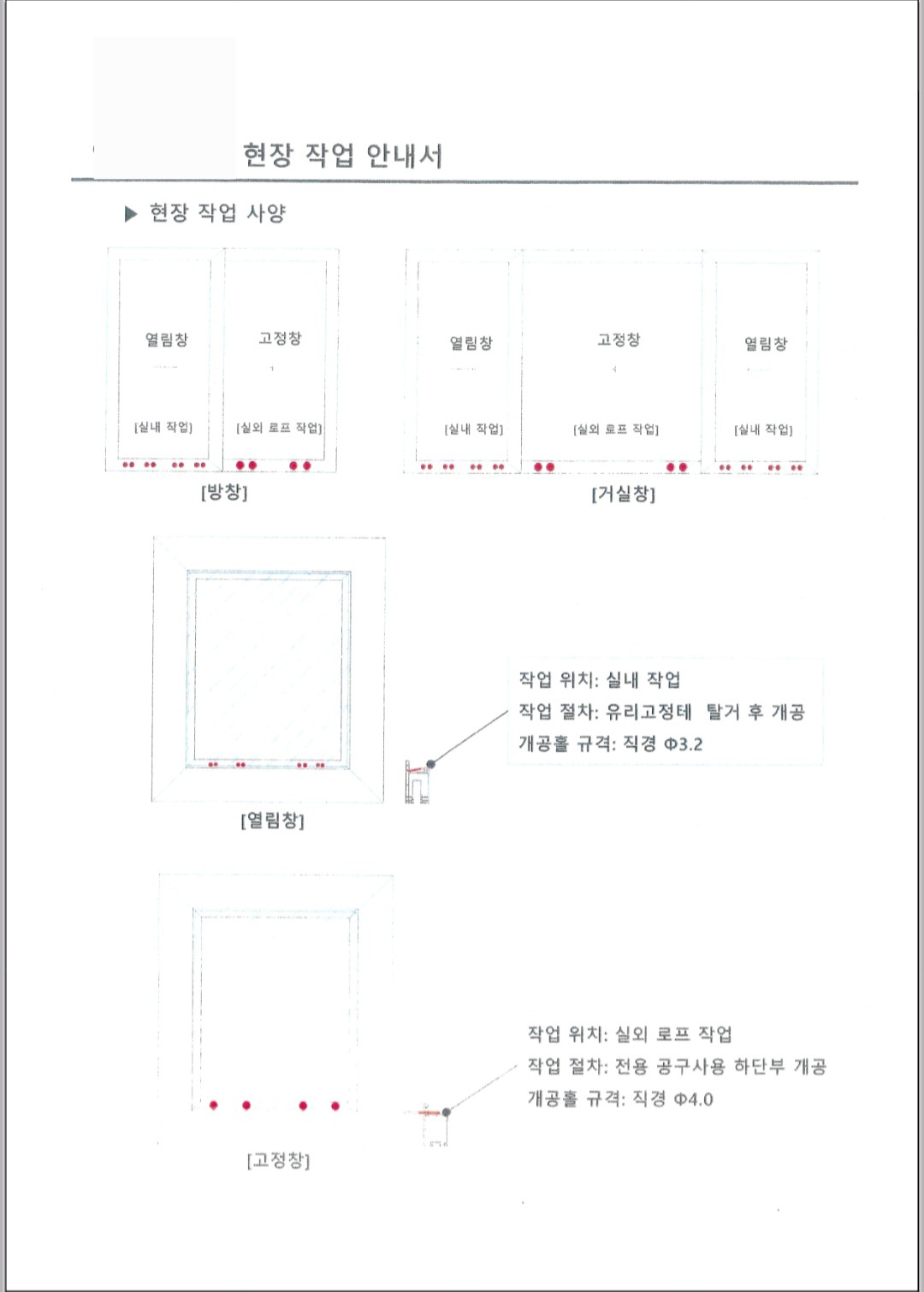 LX하우시스는 해당 창호가 달린 모든 창 (세대당 많게는 5개까지 달려있음)에 타공을 해야한다고 합니다.